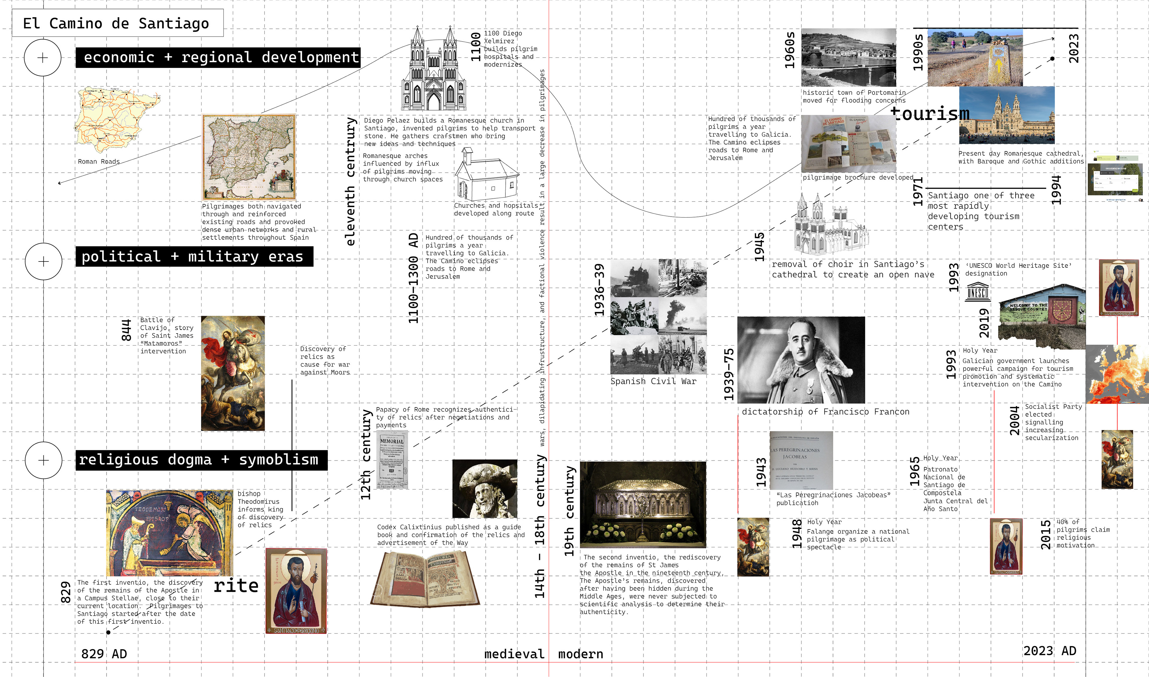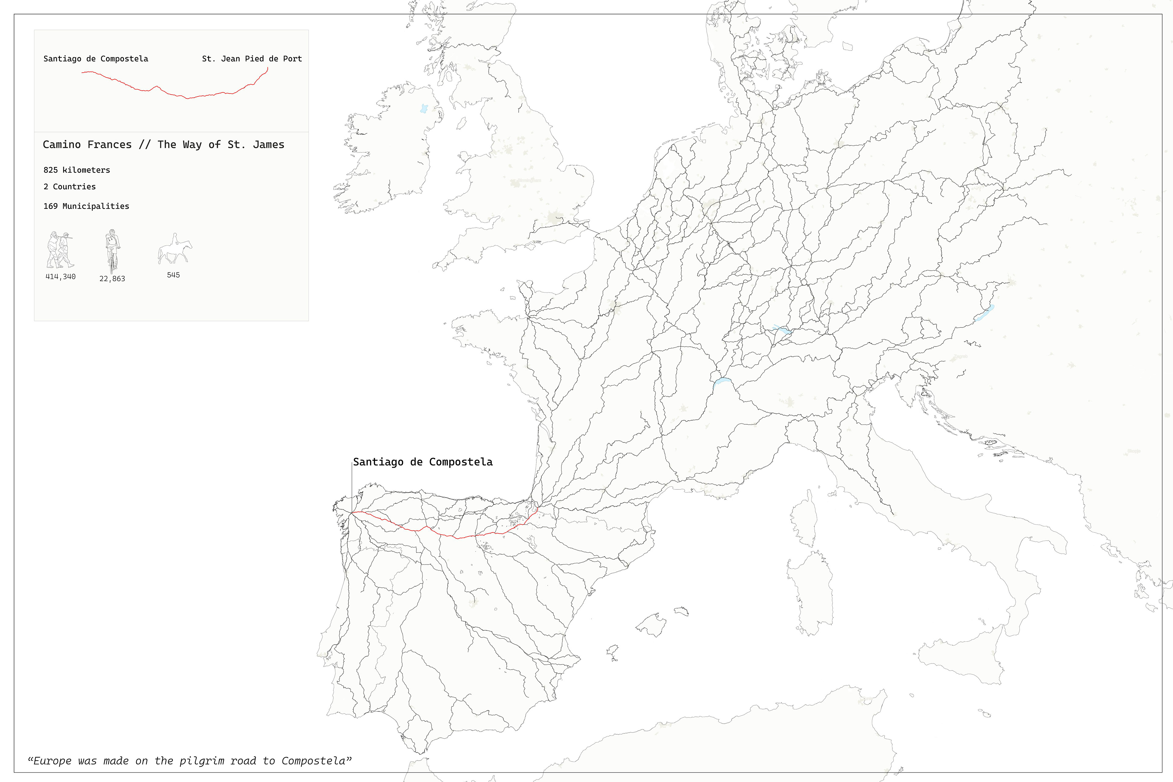The Climate of Pilgrimage is about the tensions and conflicts between preservation, authenticity, commodity, and spirituality embedded in contemporary landscapes of religious pilgrimage. The work investigates how landscape architects can and should participate in the evolution of these heritage landscapes in the present and future dynamism propelled by climate change. The project responds to the questions and crises facing religious pilgrimage landscapes by applying landscape architectural methodologies to the case study of the Camino de Santiago, a centuries-old network of pilgrimage routes culminating at the shrine of St. James in Santiago de Compostela.
