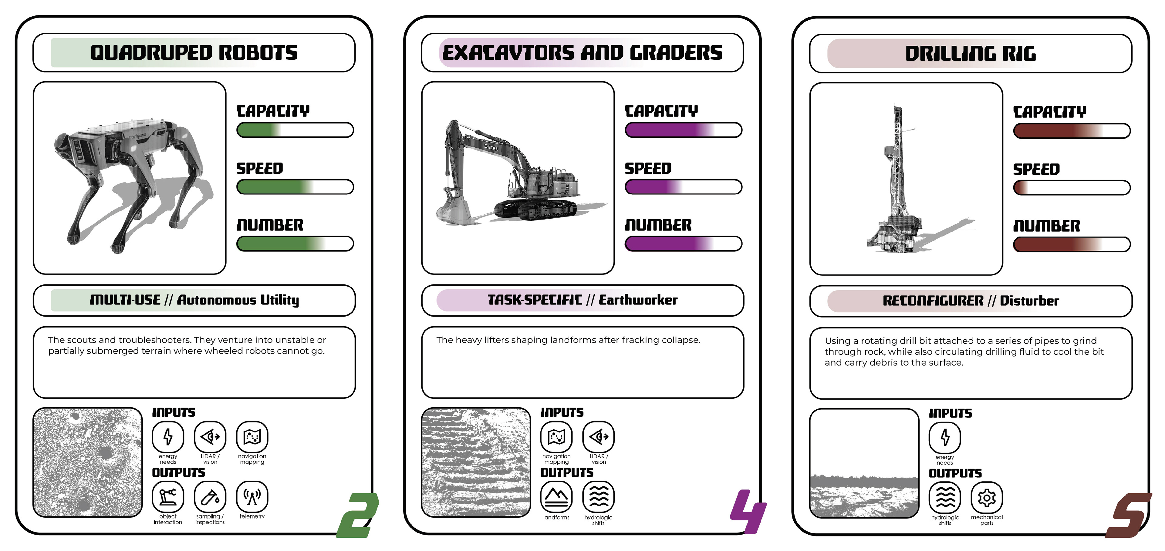 Amid the growing reality that many contemporary landscapes can no longer be stabilized or restored through conventional stewardship, machines are increasingly deployed as intermediaries of remediation. Yet rather than proposing optimized solutions or predictive futures, Automated Earthworks constructs a speculative framework for understanding what emerges when robotic logics are embedded within unstable land systems and granted partial autonomy. Through parameterization and iterative adaptation, simplified terrain metrics become navigable inputs, and outputs manifest as evolving landscapes shaped by the friction and hybridization of mechanical and natural logics. Ultimately, the project asks whether robots compete with, remediate, or co-author nature, and how their operational constraints might be manipulated to cultivate more ecosystem-minded futures."