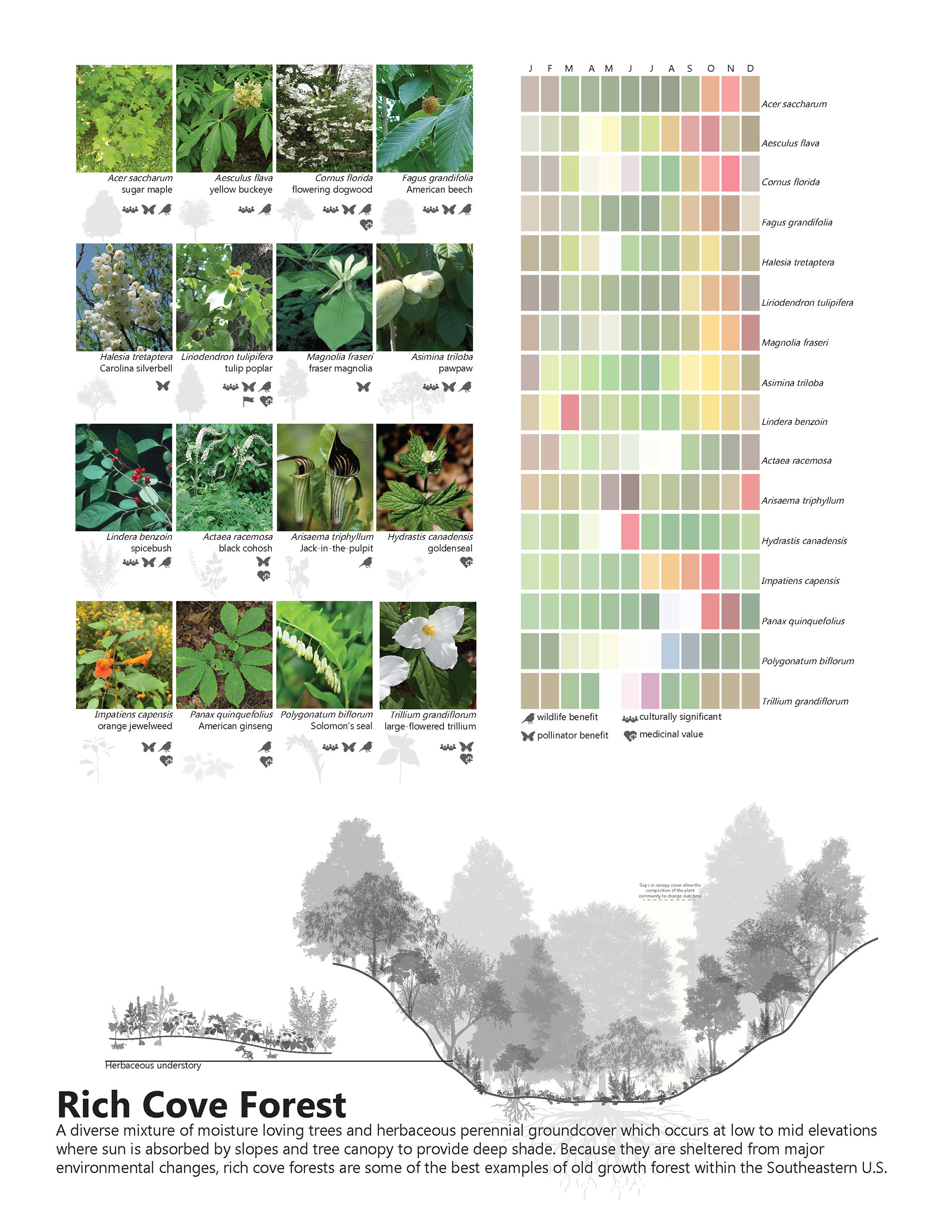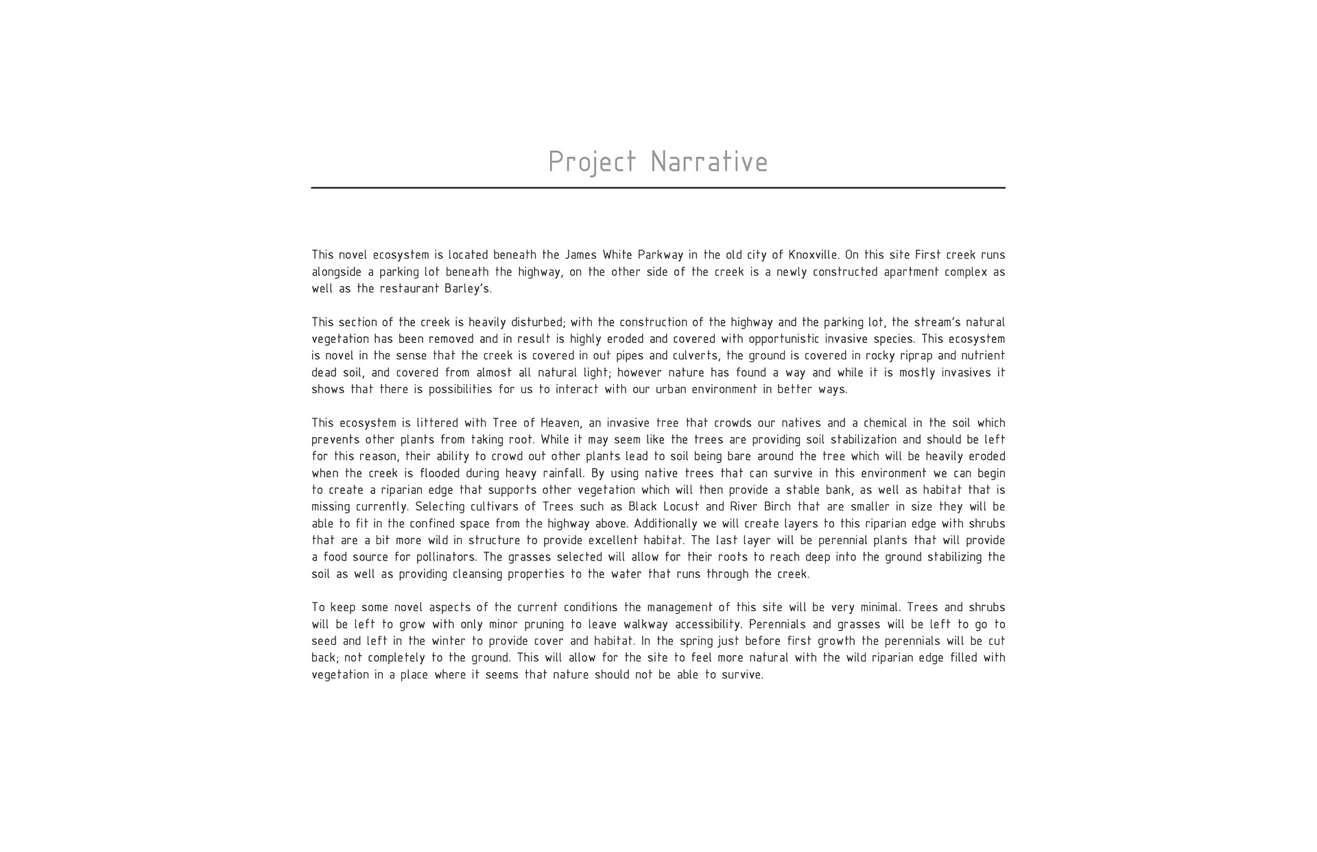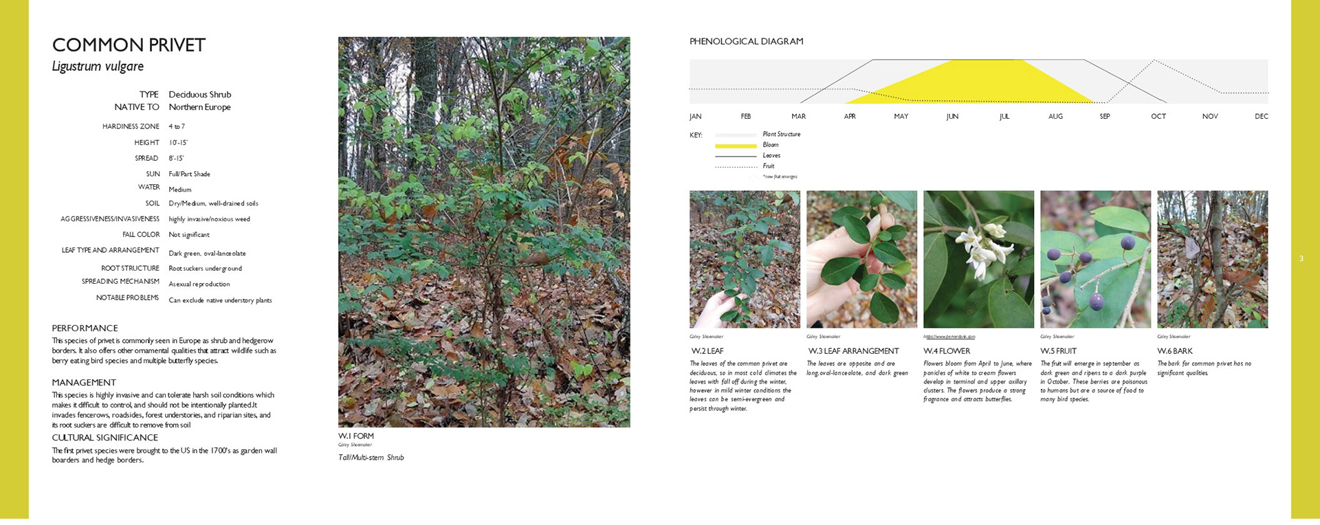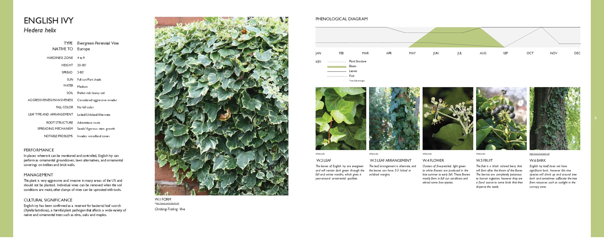 Course Description: This course provides students with an introduction to the use of plant materials in the built environment, drawing upon contemporary approaches to landscape architecture and sustainable landscape design. Practice in these fields increasingly combines ecological and horticultural science with theories of aesthetics to create landscapes that provide ecosystem services in addition to aesthetic value. The course is structured in such a way to provide students with concrete working knowledge - identification and performative characteristics - of approximately 120 plants that are somewhat ubiquitous in the southeast or across the United States with a particular emphasis on plants that are well-adapted to urban situations. In addition to plant identification, the course will provide students with a series of frameworks through which to consider how plants have been or could be utilized, as well as emerging ecological theories such as novel ecosystems.