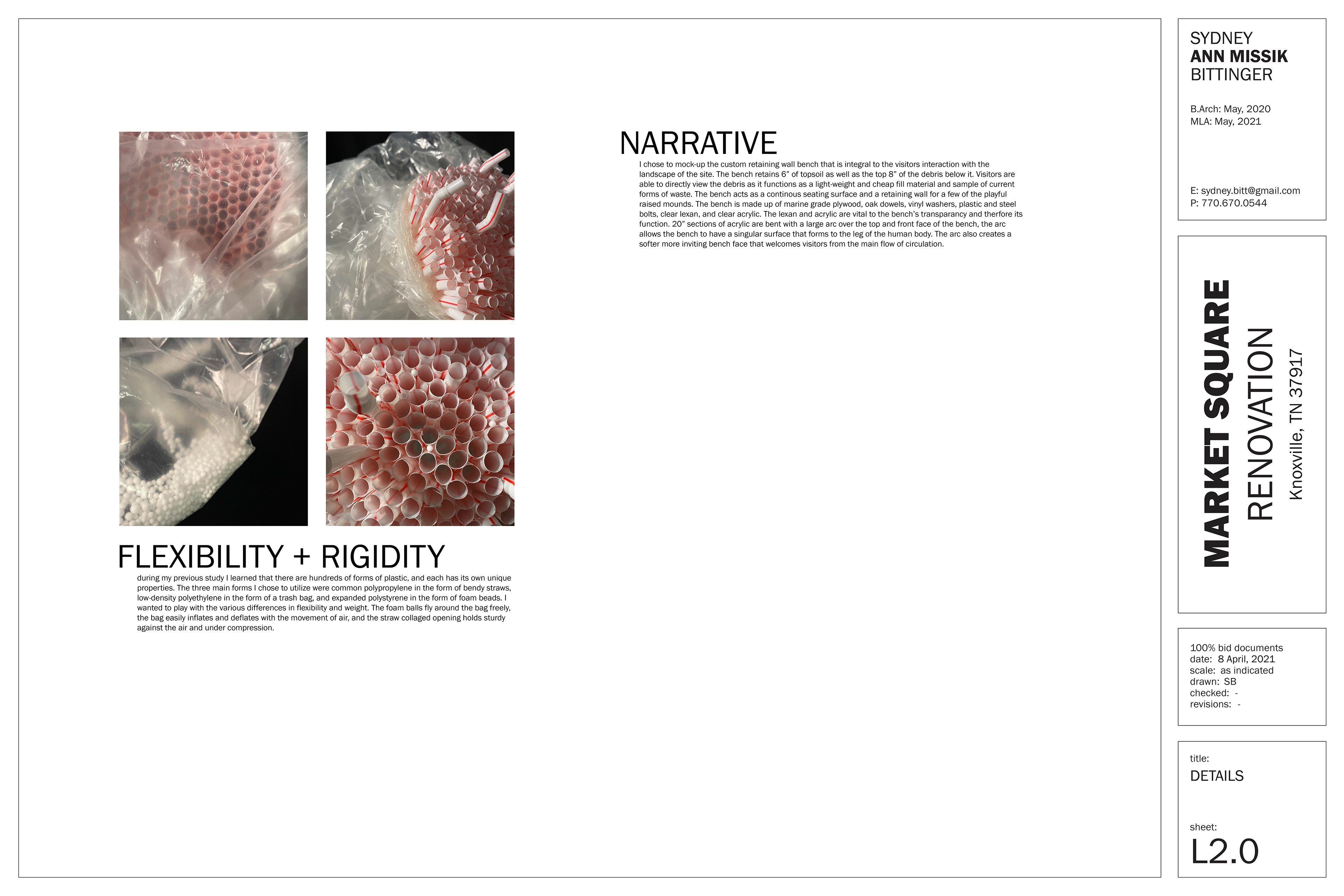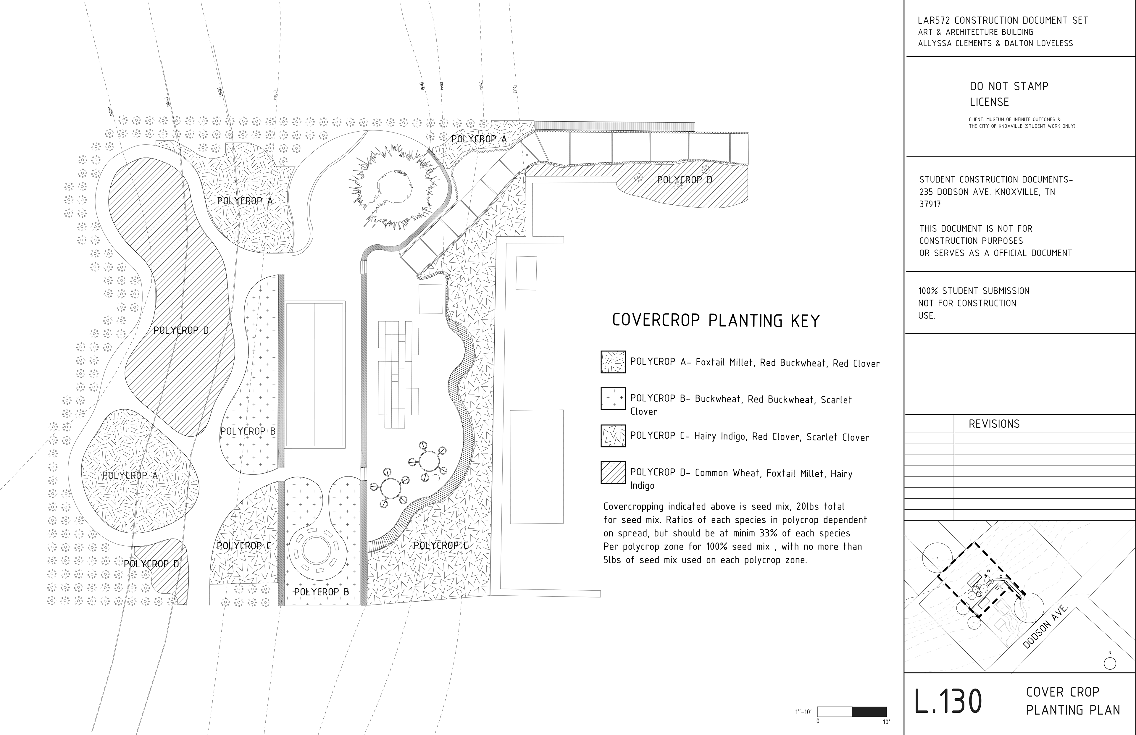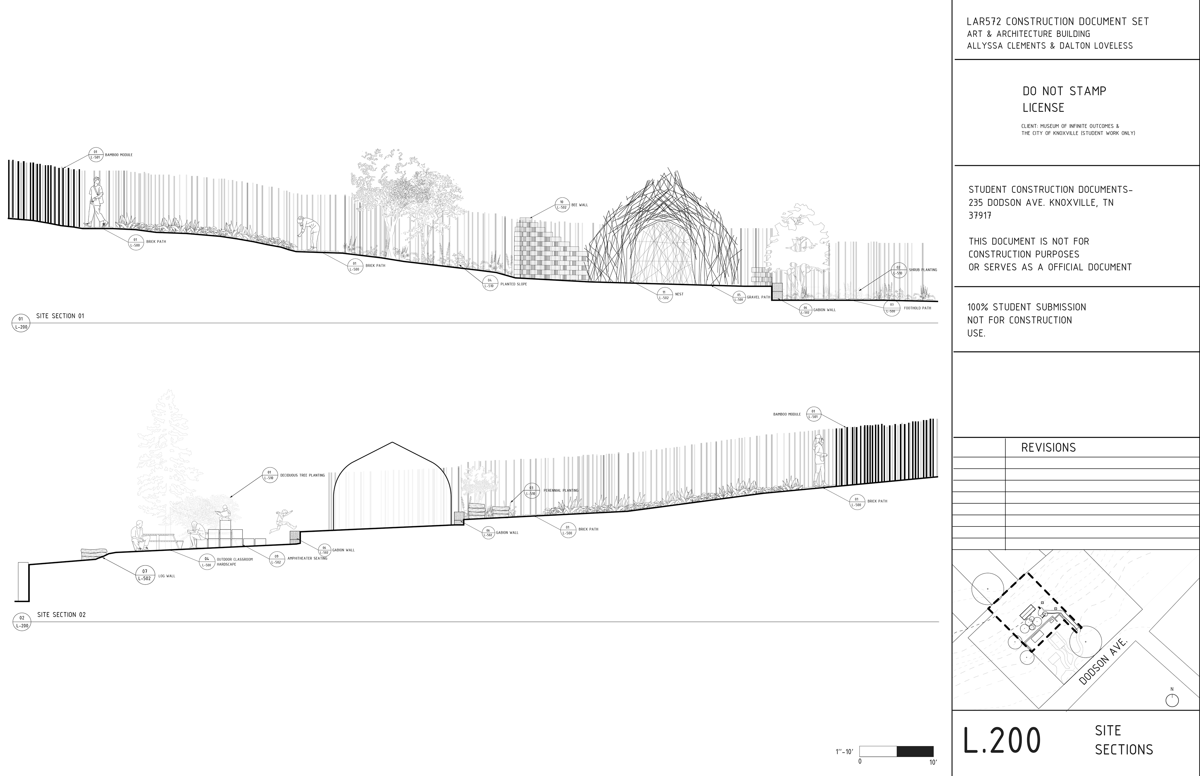 Exercise: The group design exercise focus on the Museum of Infinite Outcomes, a local educational landscape that invites people to engage more deeply, through workshops and gardening, with plants and wildlife. The site consists of the northern sloping portion of the museum, which is currently overtaken by kudzu. Student explored a detail, be it a paver or human-scaled structure, that could engage museum visitors, mitigate the kudzu’s expansion through artful ways, and advance local material sourcing or upcycling. The detail’s deployment and assembly should act as catalyst for wider design interventions, such as paths or gathering spaces. Students will develop a construction documentation set and supplementary visuals to present their work before the museum’s board