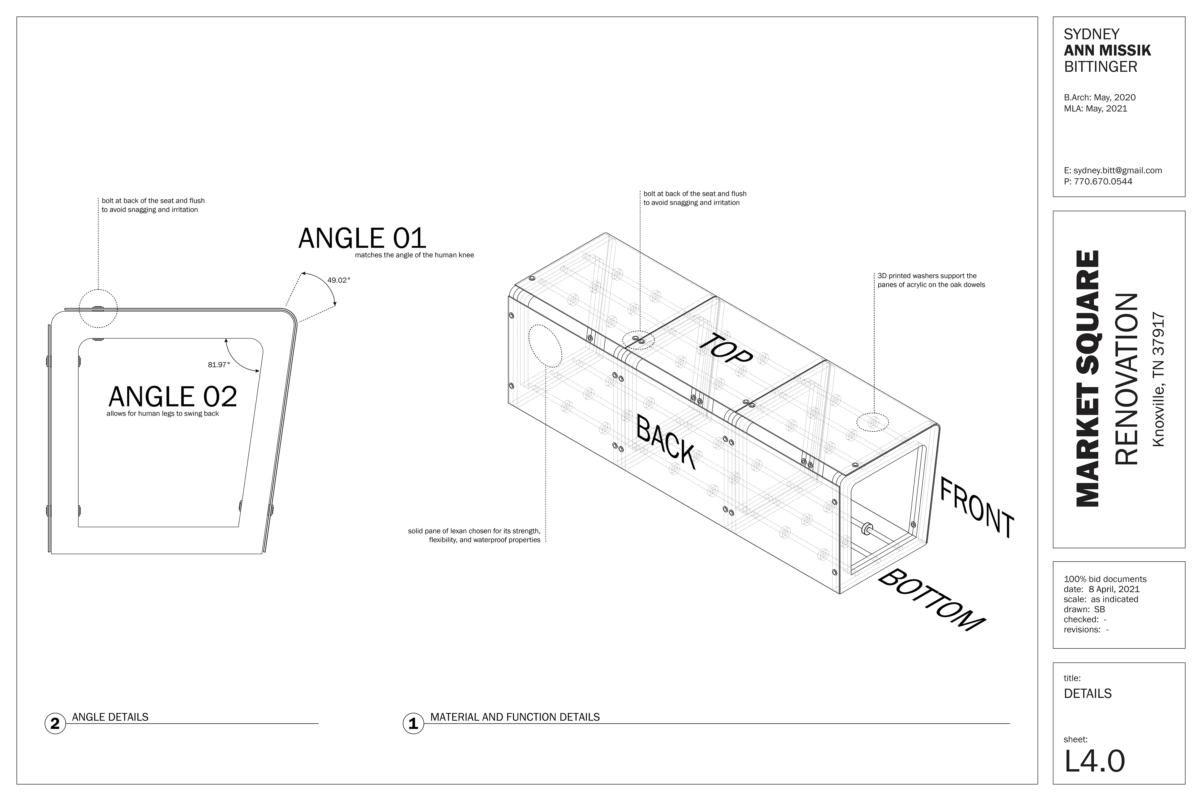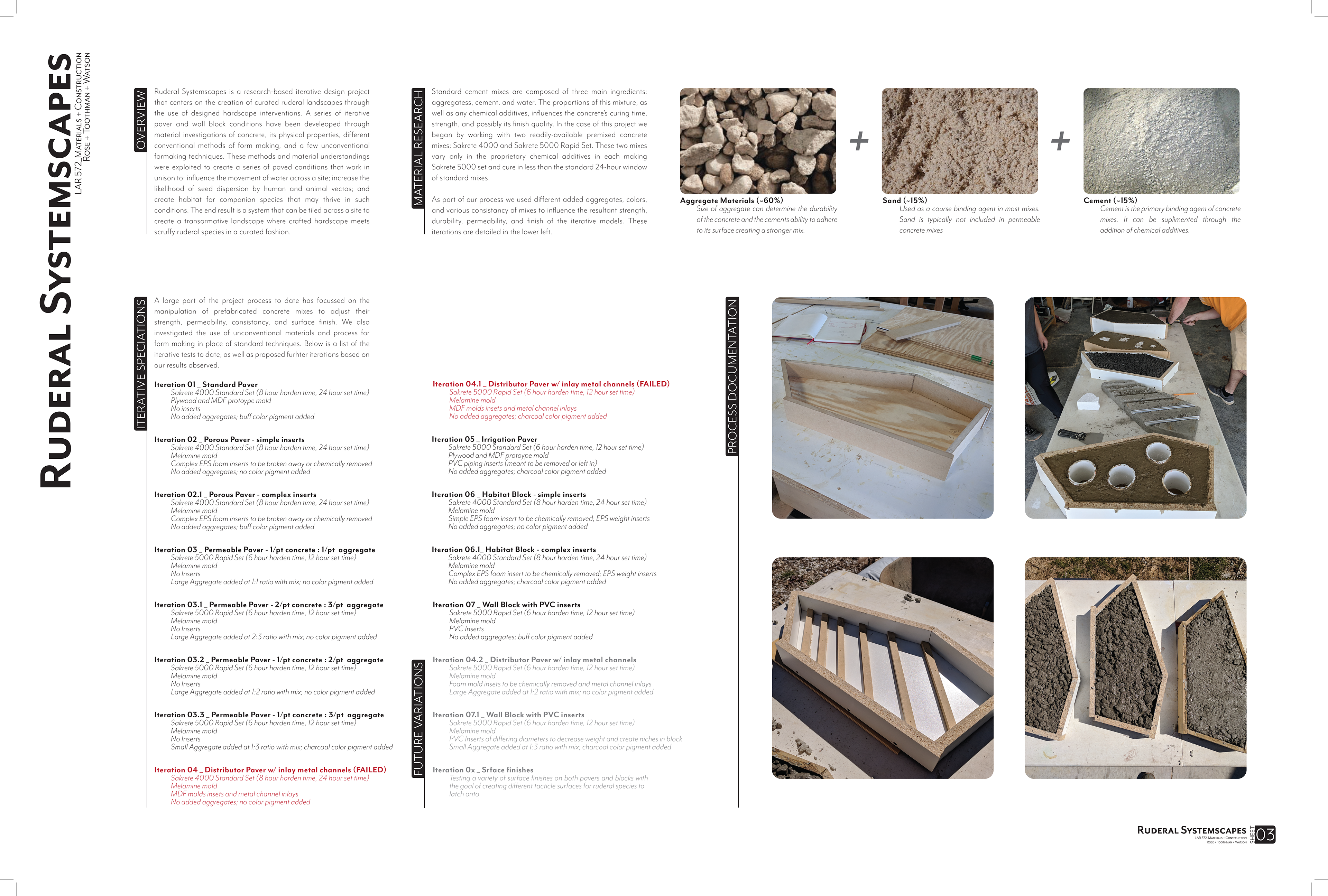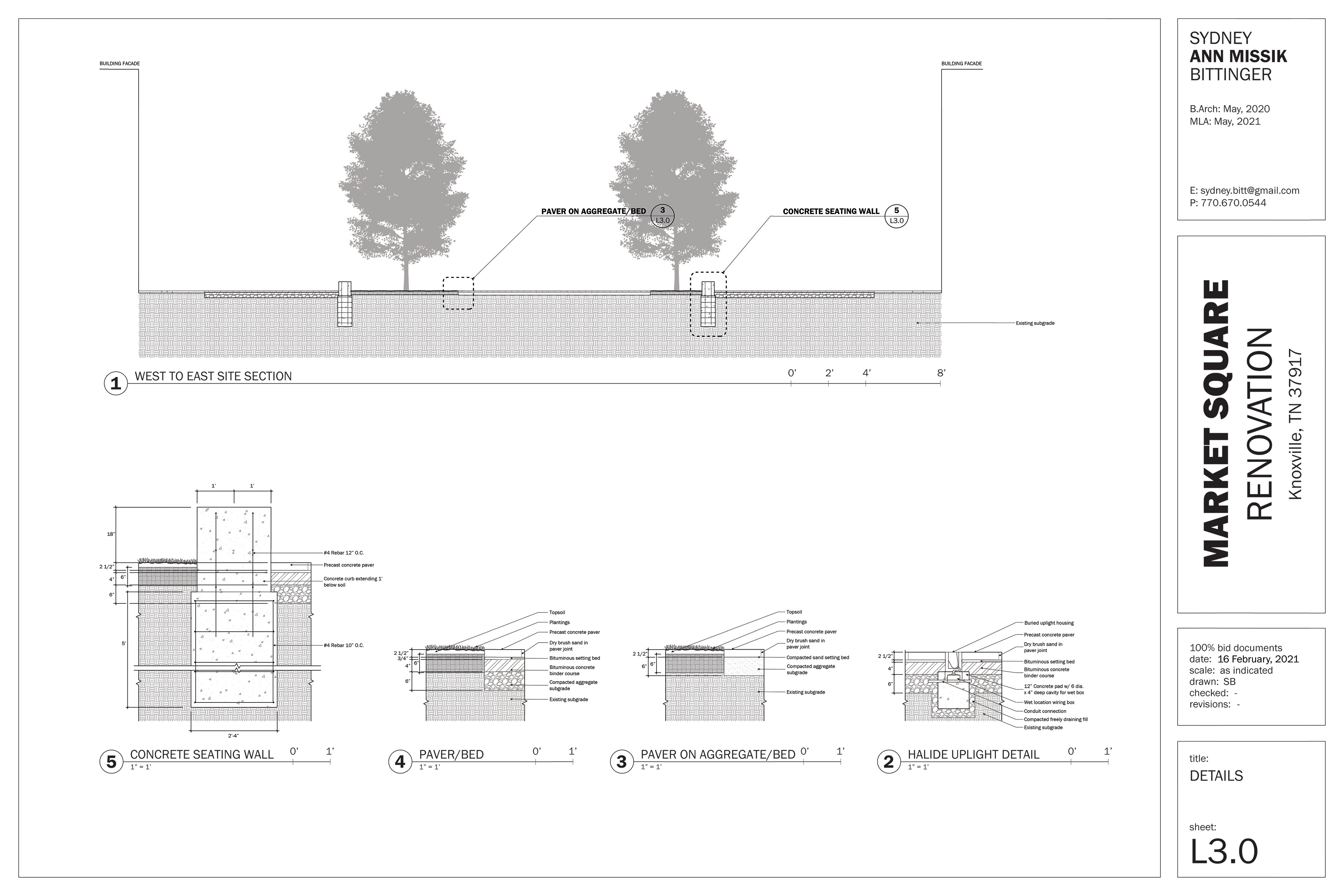 Course Description: This course focuses on design issues related to construction, fabrication, materiality, and tectonics for landscape architecture. Students will learn about construction-related issues such as layout, dimensioning, and the creation of construction details, as well as explore new technologies, methods, and materials being utilized in contemporary landscape architectural design and construction practices.